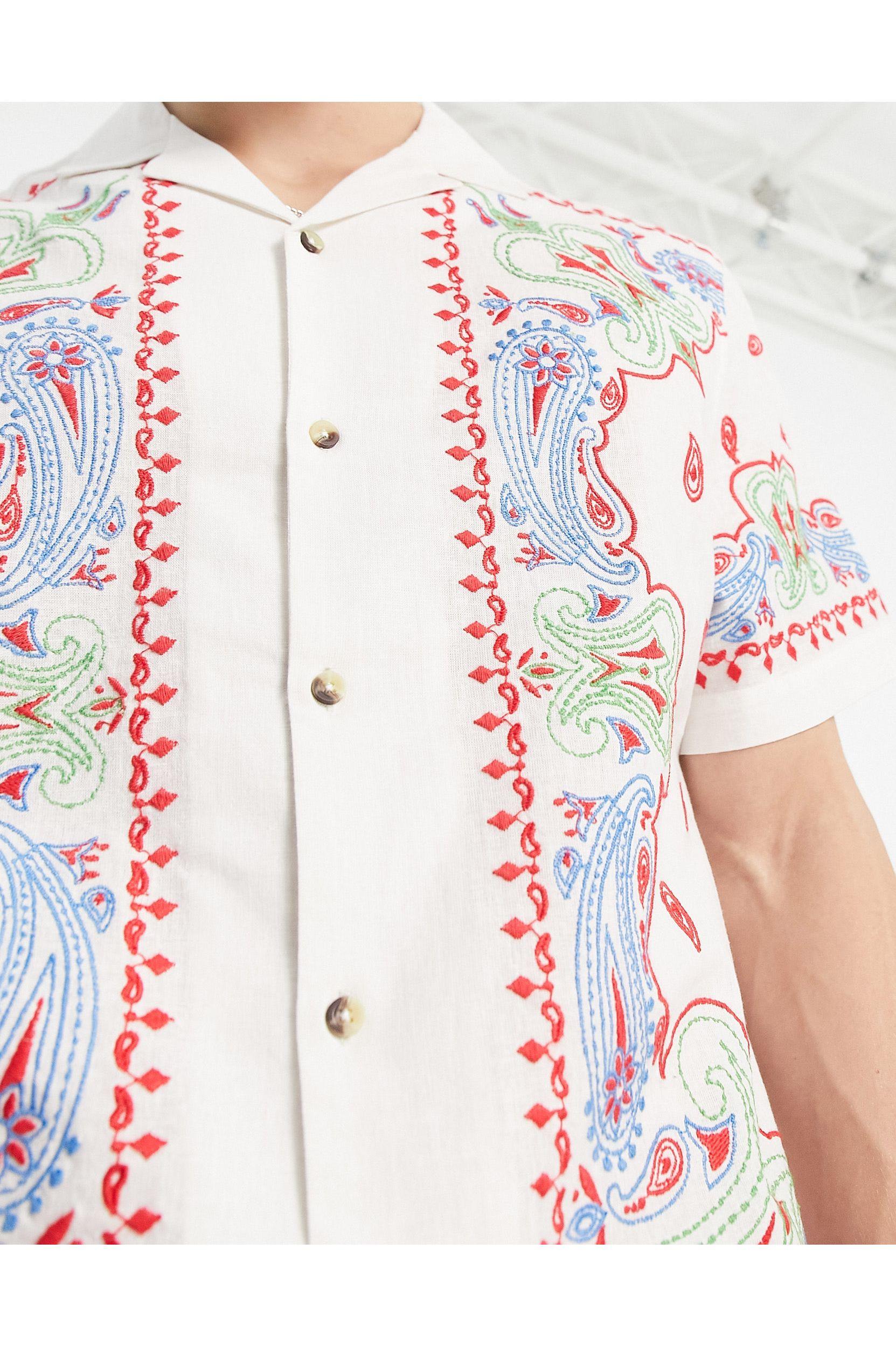 Asos Relaxed Camp Collar Linen Mix Shirt With Embroidered Border In White For Men Lyst Uk